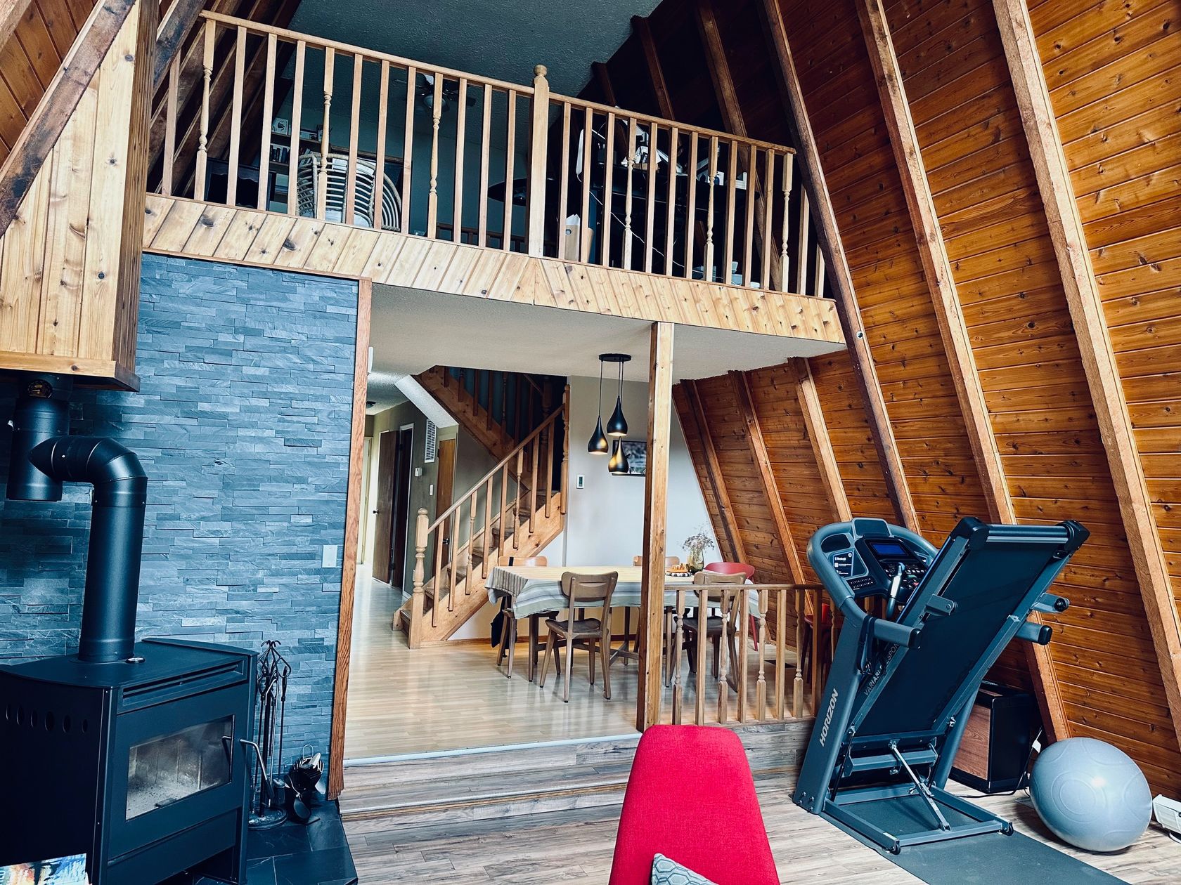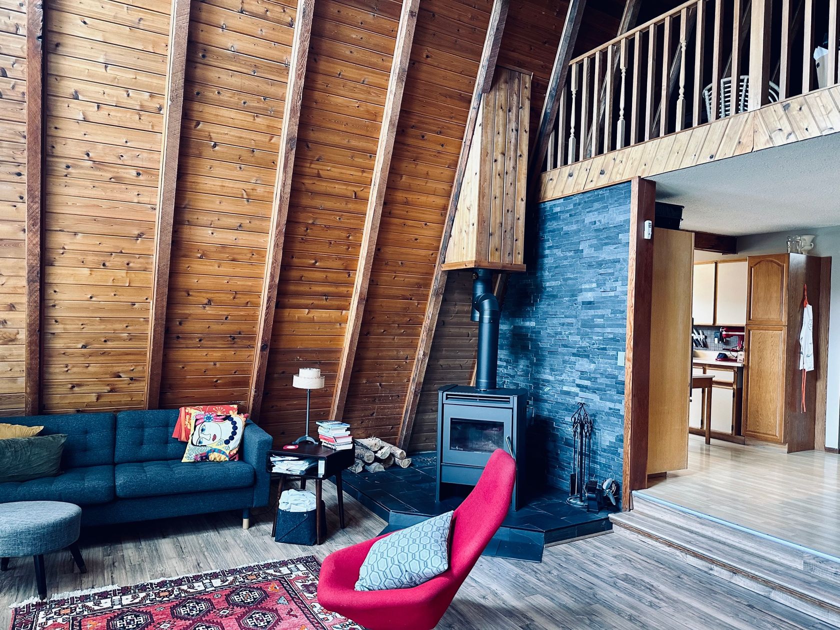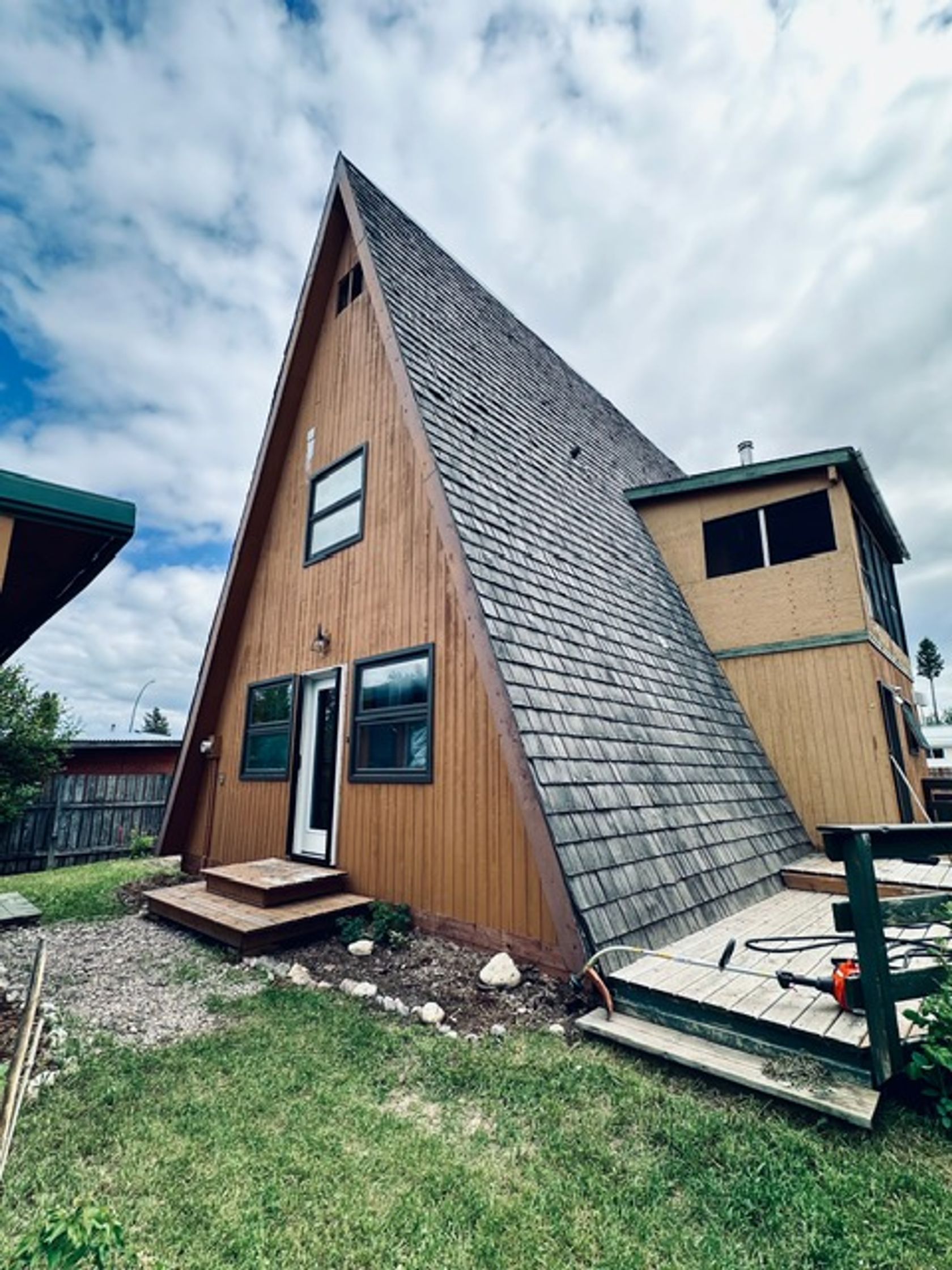 This is a cute character A-frame home located in a family friendly neighborhood. The home features three bedrooms, two bathrooms, with open concept living. The master bedroom is on the second floor with an ensuite bathroom, two cozy bedrooms are located on the main floor. Upgrades include an updated ensuite bathroom, new blaze king wood stove, new paint, new washer & dryer, new dishwasher. This home is a must see to appreciate all that it has to offer.