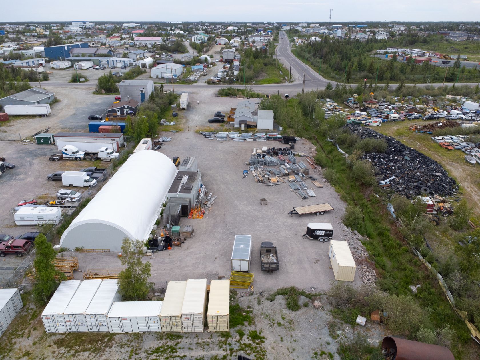 Expansive commercial lot on Kam Lake Road – endless potential and highly visable due to it being on the main road of Kam Lake and at the intersection of Deh Cho Blvd. This sprawling lot on Kam Lake Road offers just under 80,000 sq ft of fully developed, flat land, presenting limitless possibilities for business, storage, or expansion. The property features a 40x100 ft Quonset, ideal for storage, workshops, or commercial use. Additionally, a semi detached, modular building with an addition provides 2 seperate rental or staff housing units: