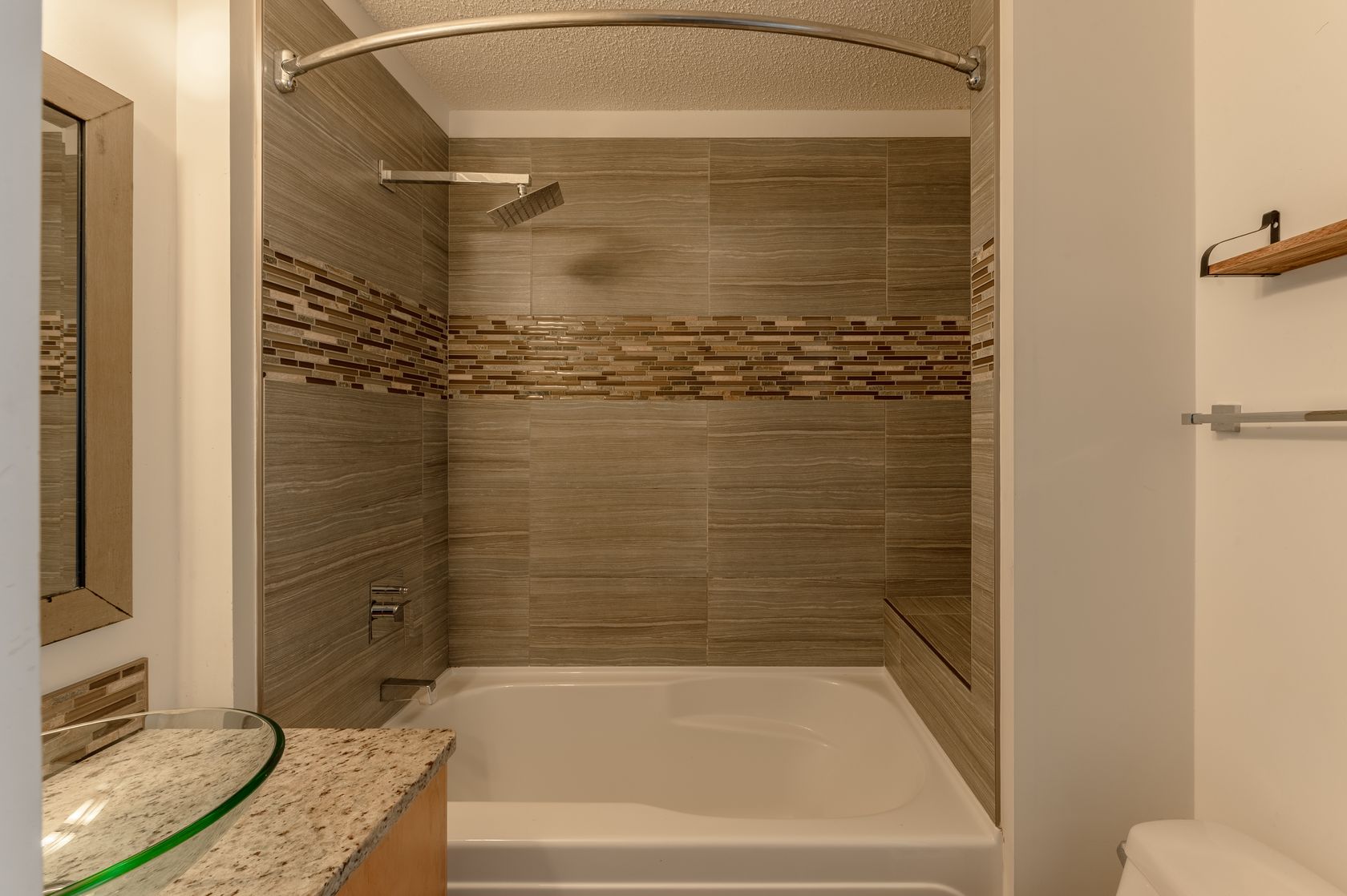 Located in the desirable Niven Lake subdivision, you’ll be within walking distance of downtown. Inside, the modern kitchen has flat-panel maple veneer cabinetry, solid granite countertops, a glass tile backsplash, and stainless steel appliances. The sleek design continues into the bathroom, complete with a granite-top vanity, clear glass sink, and a fiberglass tub with ceramic tile surround.