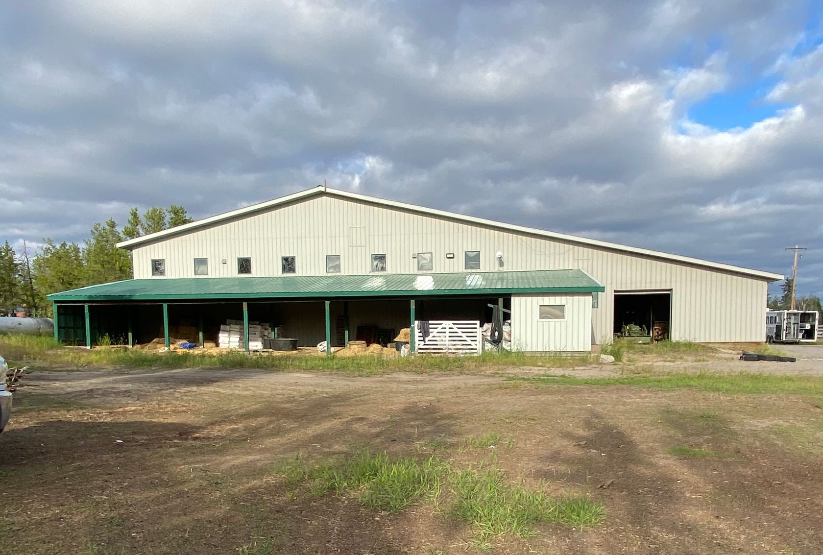 The property is the former home of North Country Stables. Improvements include a 3-bedroom, 2 bathroom, 2-storey home with vaulted ceilings in the living room and impressive views to the north and an approximately 13,400 square foot warehouse/barn formerly used as indoor stables.