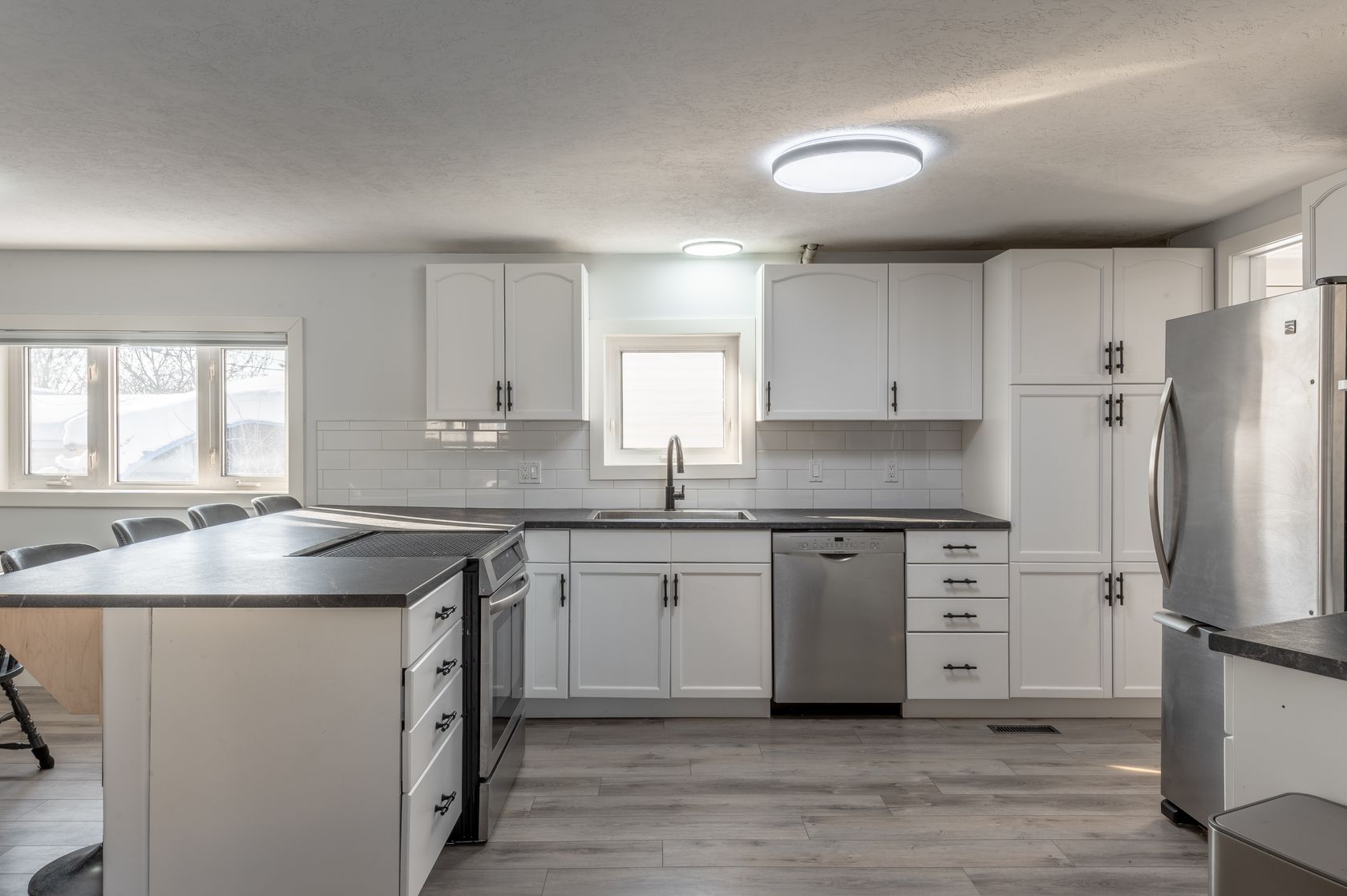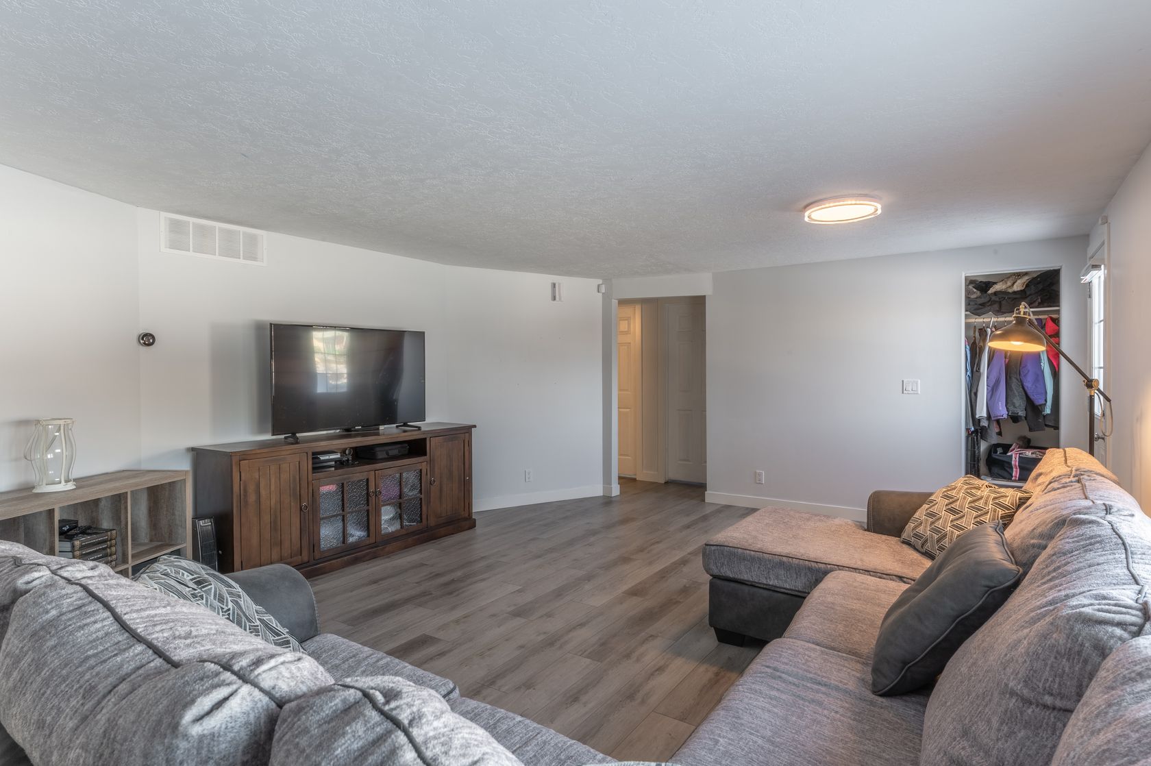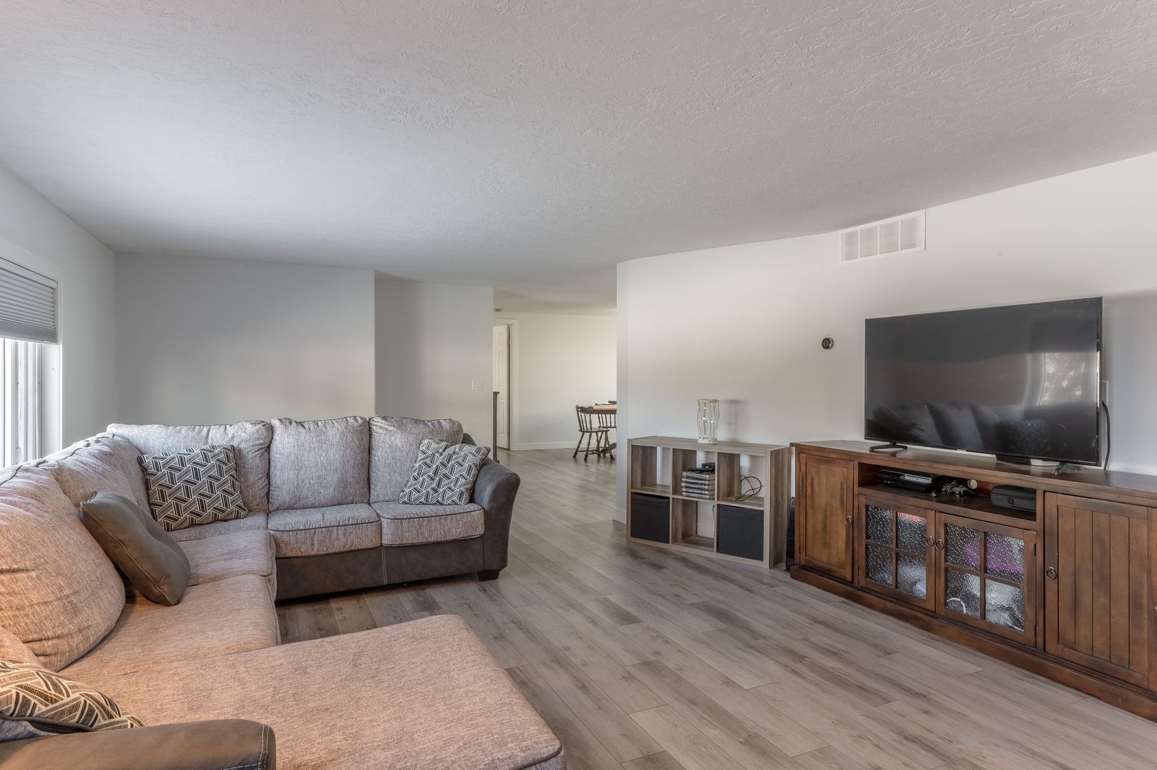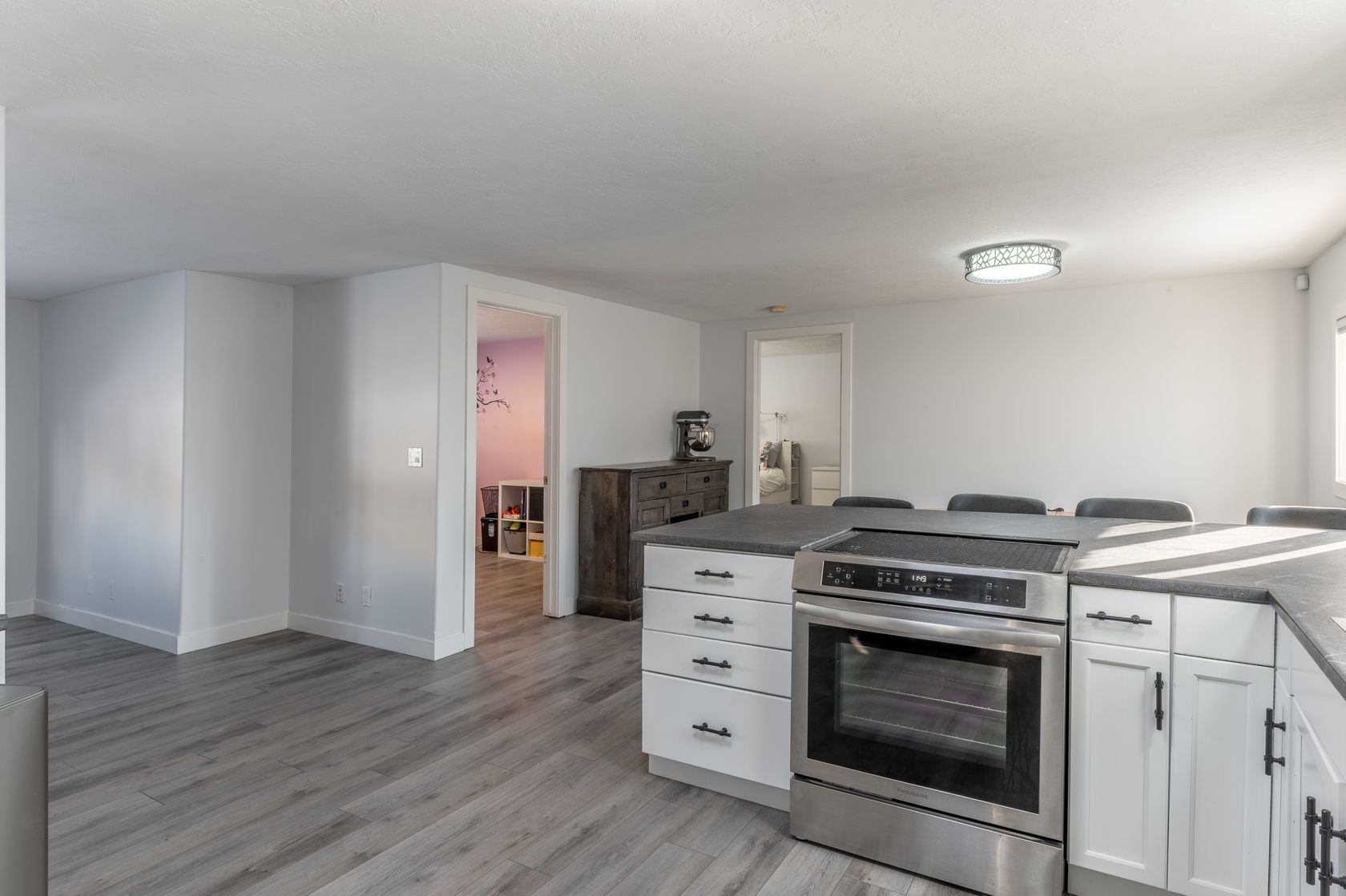 From the moment you enter, you’ll notice the fresh, modern updates that run throughout. The interior shines with a brand-new kitchen refresh and stainless steel appliances, fully renovated bathrooms, and new flooring and paint that create a bright, cohesive feel. The expansive living room anchors the home with stylish light gray floors, abundant natural light, and flexible space that can accommodate a dedicated play area for the kids or a compact home office.