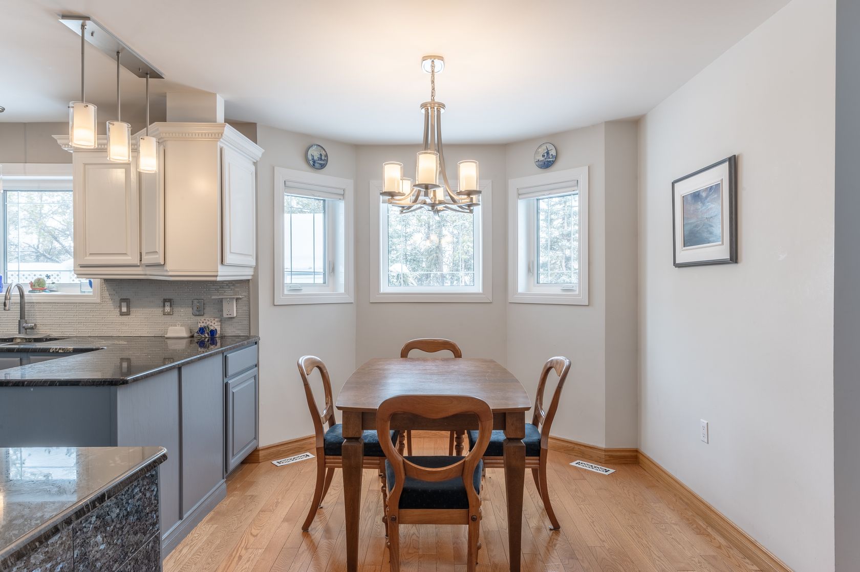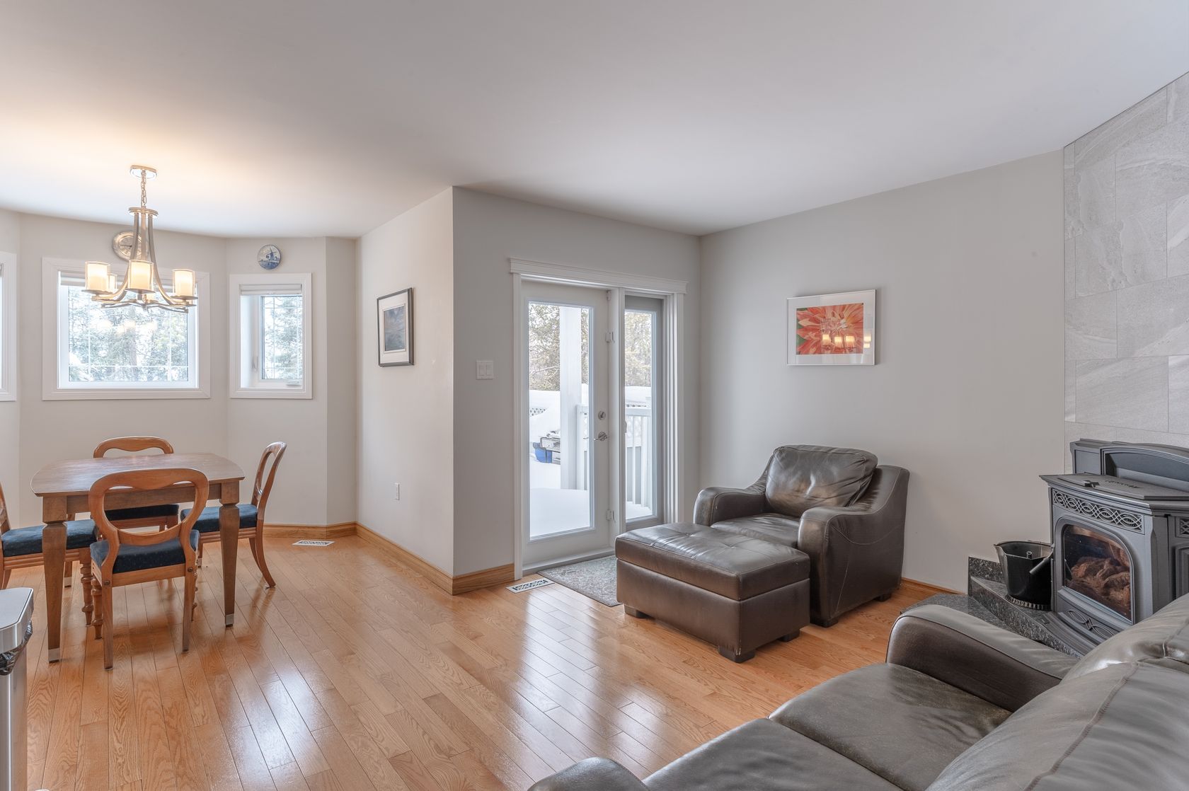 Just off the kitchen, a cozy second living room with a pellet stove and a bright breakfast nook creates the perfect spot to unwind. Garden doors lead you outside to a spacious backyard, fully finished with low-maintenance composite decking that spans from corner to corner. Enjoy the added bonus of a greenhouse/storage shed and the privacy of backing onto green space with mature trees.