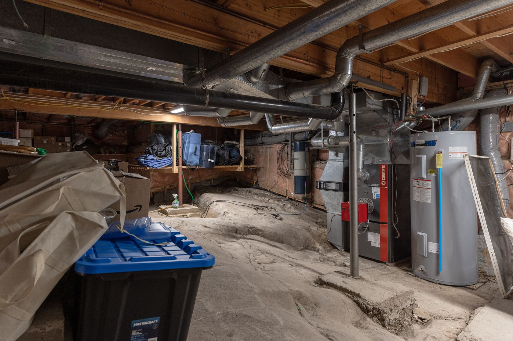 Before heading upstairs, you’ll find a versatile room ideal as a fifth bedroom, home office, or den. This level also provides access to the attached double garage and a massive crawlspace that houses the furnace, hot water tank, and offers an abundance of storage.